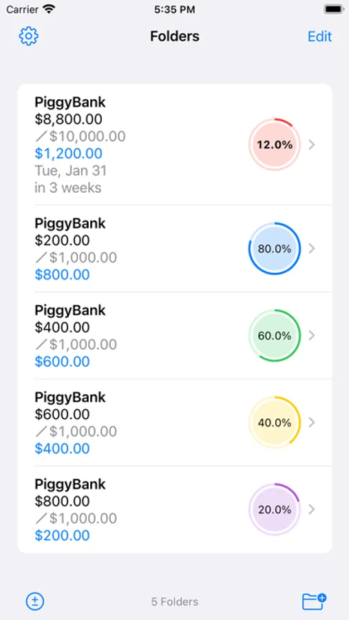 - Any number of savings goals