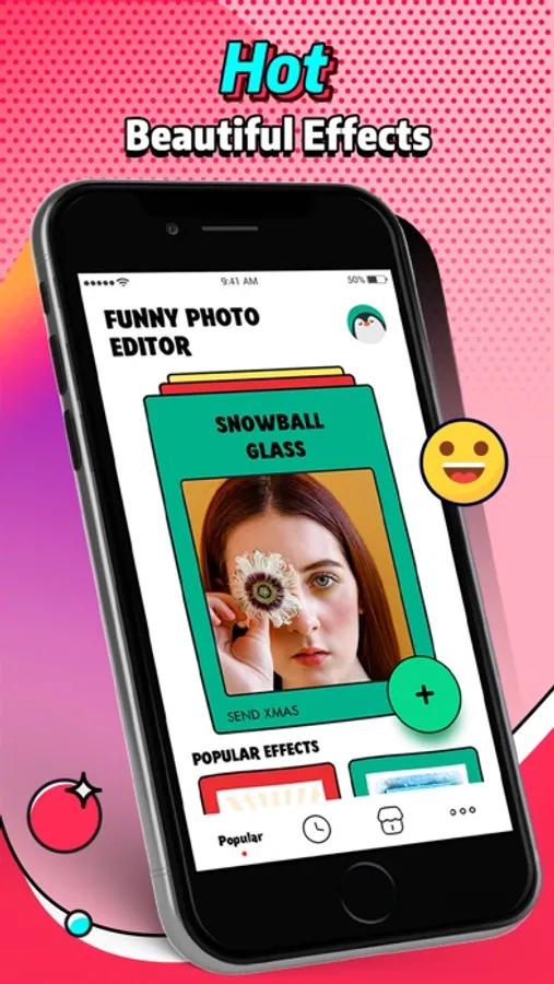- Add amazing effects for photos, such as stars, lights, snows, flowers, fireworks etc.