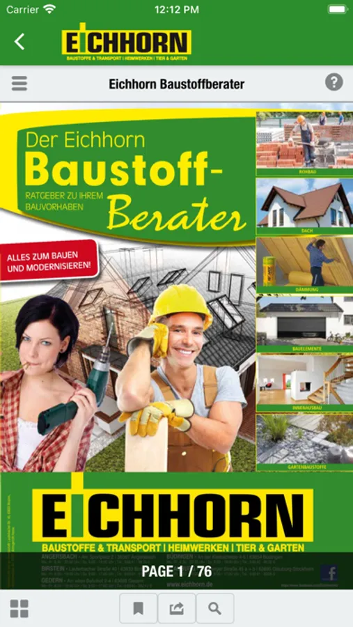 Mit der Eichhorn App sind Sie immer topaktuell über die neuesten Angebote informiert – und das ohne Umwege direkt auf Ihr mobiles Endgerät. Verpassen Sie nie wieder aktuelle Rabattaktionen, nützliche Tipps, Termine und alle weiteren Informationen rund um die Eichhorn Bauzentren.