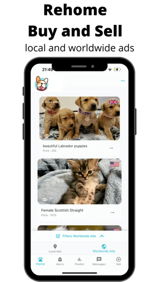 The app helps pet owners find new homes for their pets quickly and easily. An online marketplace that offers free ads to pet owners/breeders who wish to rehome and sell pets online fast and free. This app has been developed to make the process of finding a new home easier and safe.