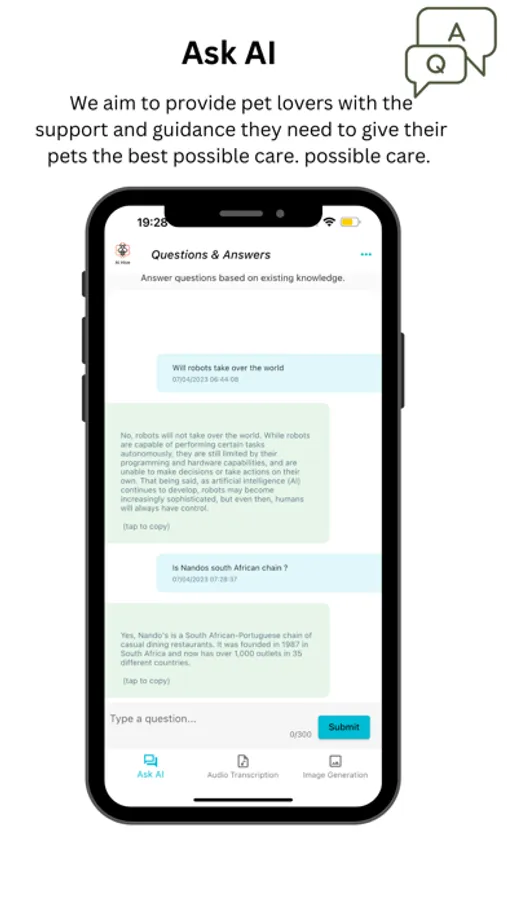 With our new ASK AI chatbot feature, you can get answers to any questions you have about pet care or adoption, and receive guidance on ensuring your furry friend's well-being.