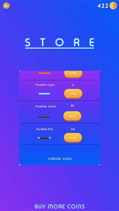 Collect coins to use in the store to purchase new paddles.