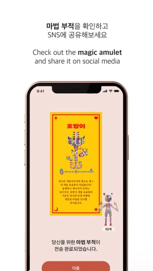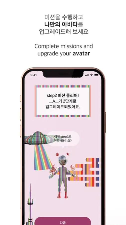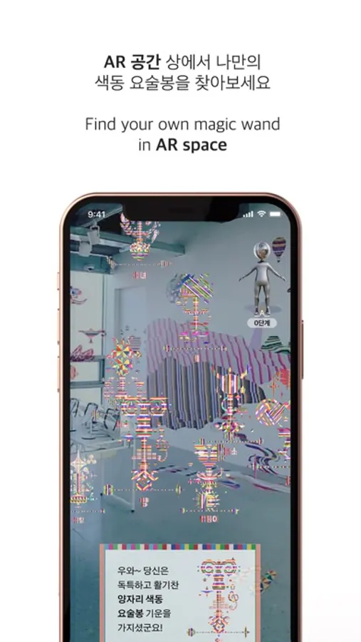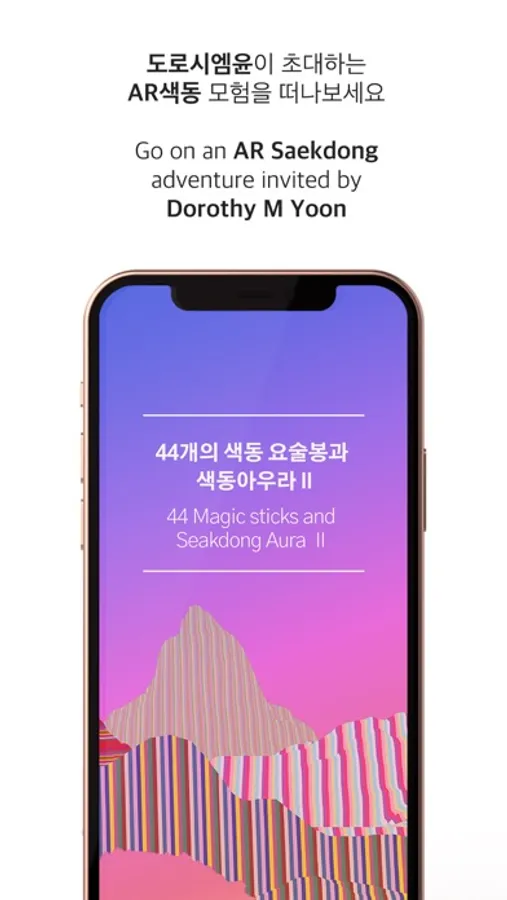 ‘44개 색동 요술봉과 색동아우라Ⅱ’는 작가, 도로시엠윤이 과거 암 투병을 하면서 겪었던 ‘초현실적 순간과 색동에 대한 기억’을 바탕으로 제작된 비주얼 아트워크 어플리케이션이다. 이 어플리케이션은 베니스비엔날레에서 전시하였던 '2D 요술봉자수 이미지(아날로그/수공예/과거)'를 '3D모델링과 AR(증강현실) 기술(디지털/뉴미디어/미래)'등과 융합시켜 새로운 차원의 요술봉으로 재현하고, 고대부터 인류의 건강과 행복을 염원하는 매개체로 작동해온 - 색의 신비로운 조합형태인 - ‘색동’을 향해 여정을 떠나는 게임형 인터랙티브 콘텐츠로 제작되었다. 이번에 이 작품을 통해 관객들은 작가가 구현한 가상의 AR세계에서 직접 자신만의 AI 아바타를 생성하고, 메타버스(색동 놀이터)로 들어가 여러 예술적 장치들과 실시간 상호작용하고 교감하면서 작가가 선사하는 마법 같은 순간을 느끼게 될 것이다.