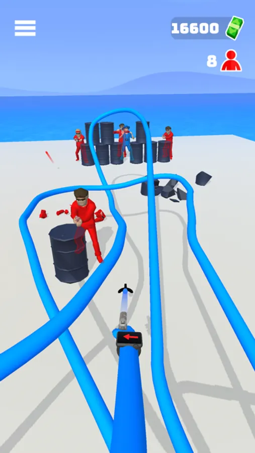You have an elongating arm, sneak into your enemies and shoot them one by one.