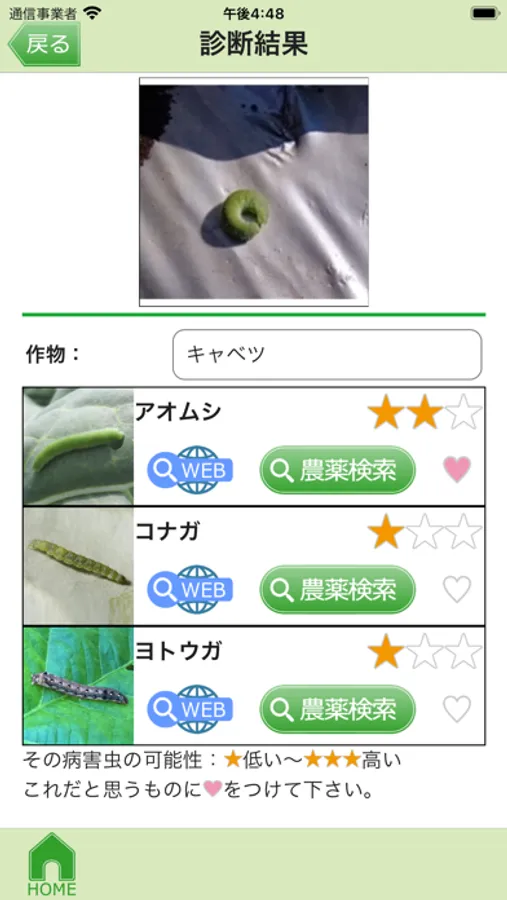 診断結果に基づき、対象の病害虫に有効な農薬を提案します。
