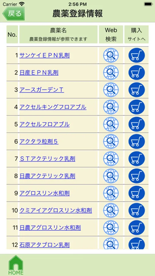 農薬を選択すると、農業資材購入サイト(日本農業システム)にリンクし、選択した農薬を購入することができます。