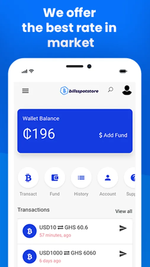 Billsspotstore allows you to securely buy or sell cryptocurrencies of any value, store them in a BTC or Local Currency Wallet, and smoothly switch between the two for everyday transactions within a few minutes.