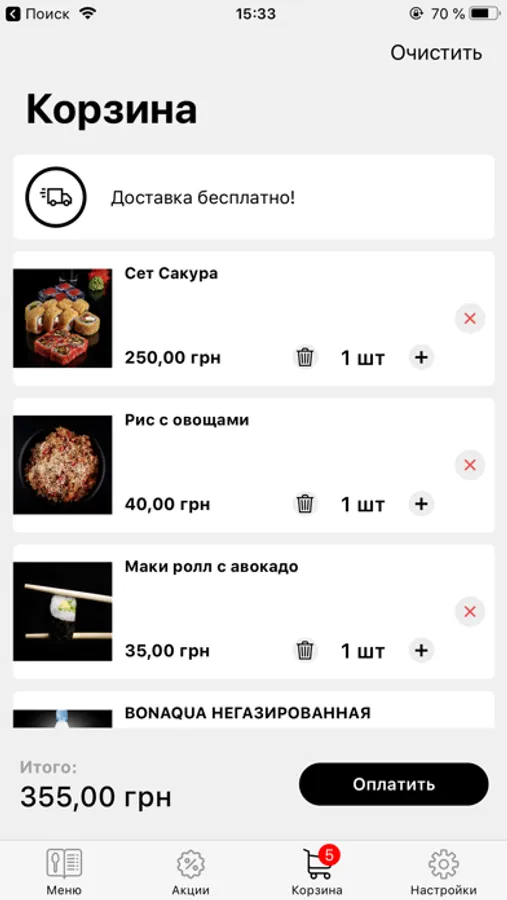 Використовуючи мобільний додаток NinjaBar, Ви з легкістю можете замовити сети,wok, роли, гункани, нігірі та багато іншого на будь-який смак. Доступні в додатку докладні описи і якісні фотографії страв допоможуть Вам обрати саме те, що Ви хочете.