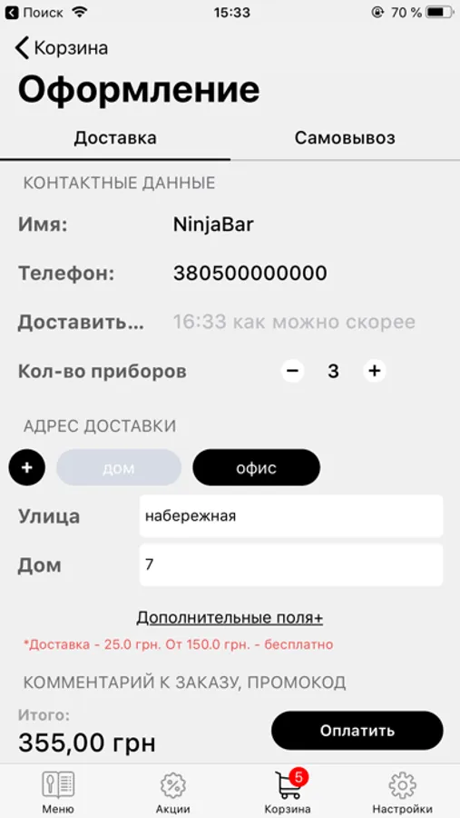 - обрати зручний для Вас спосіб оплати (готівкою чи банківською картою);