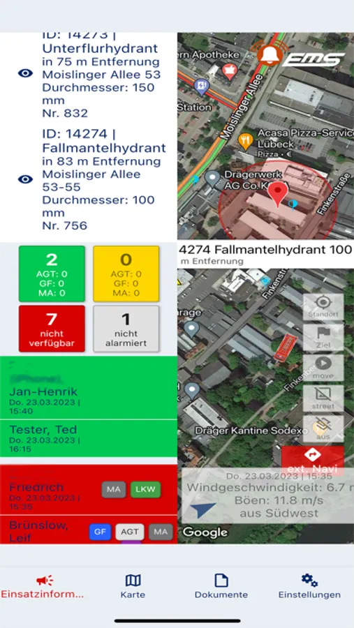 + detaillierte Einsatzinformationen