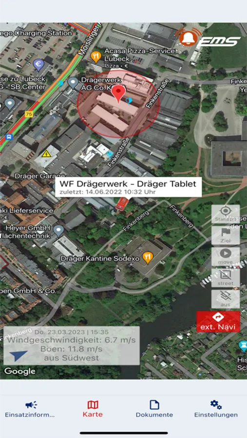 Rettungskräfte von Hilfsorganisationen, die das Einsatzmeldesystem nutzen, können EMS-Tablet als zusätzliches Mittel zur Einsatz- und Statusmeldung nutzen.