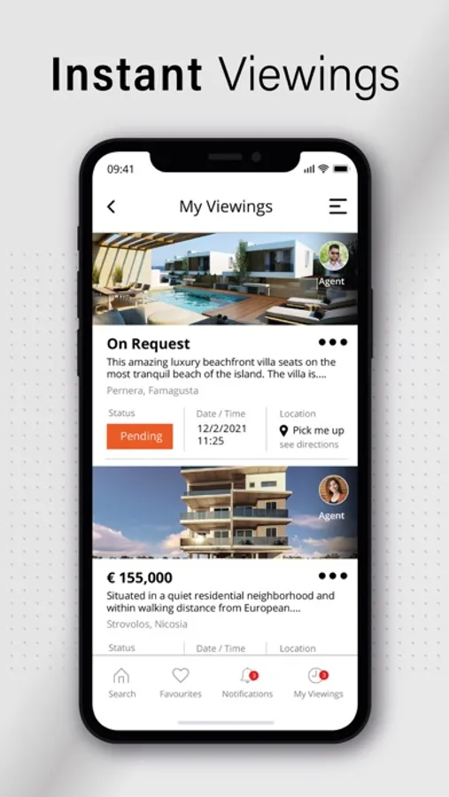 With a click of a button request a qualified agent in real time, to show you a property and track agent's location, so never wait for a scheduled viewing again.
