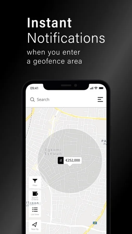 The first ever on-demand geolocation App of Cyprus, that alerts you about nearby properties that match your criteria and connecting you with a nearby agent, when you physically enter the property’s location area.