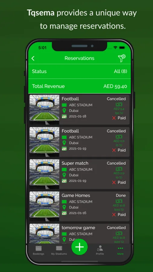 Tqsema is a UAE Football Match Booking App that provides a unique way to manage reservations. It displays an accurate system for organizing the dates of reservation of the stadiums so that the dates of reservations do not conflict, and it also provides a display of vacant times for each stadium to choose from.