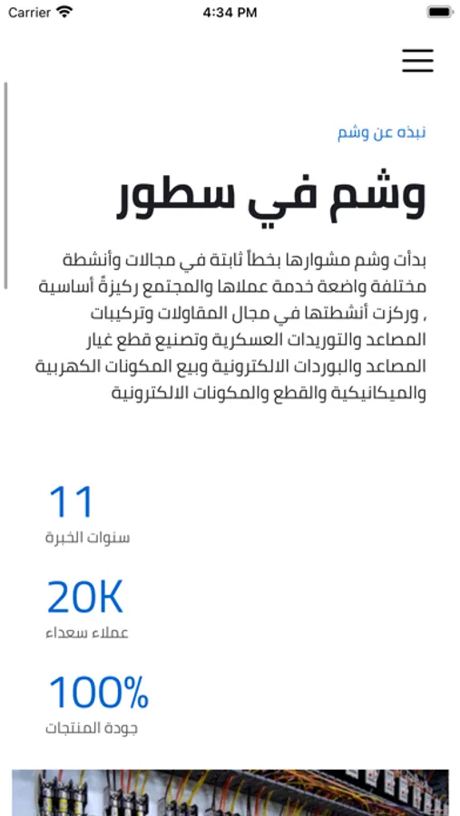 WASHM her career started with a steady streak in various fields and activities, placing her work and community service as a basic pillar, and focused her activities in the field of contracting, elevator installations, military supplies, manufacturing elevator spare parts, electronic boards, selling electrical and mechanical components, parts and electronic components.