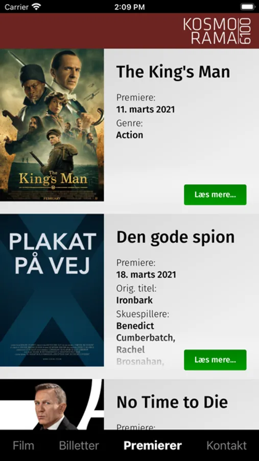 Med denne app har du mulighed for at gennemse programmet for Kosmorama Haderslev, samt se yderligere filminformationer som trailer, censur, medvirkende skuespillere, varighed m.m.