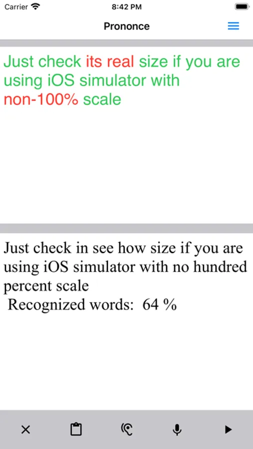 The application allows you to listen, record and compare using speech recognition, as well as by ear, recorded image of speech with the original.