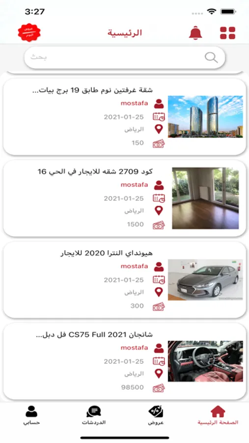 تطبيق عروض اليوم جعل كل شىء بسيط من الممكن البحث عن اعلانات عقارات او سيارات او موبايلات للبيع ، ايضا قطع الغيار و الاجهزه الالكترونيه.