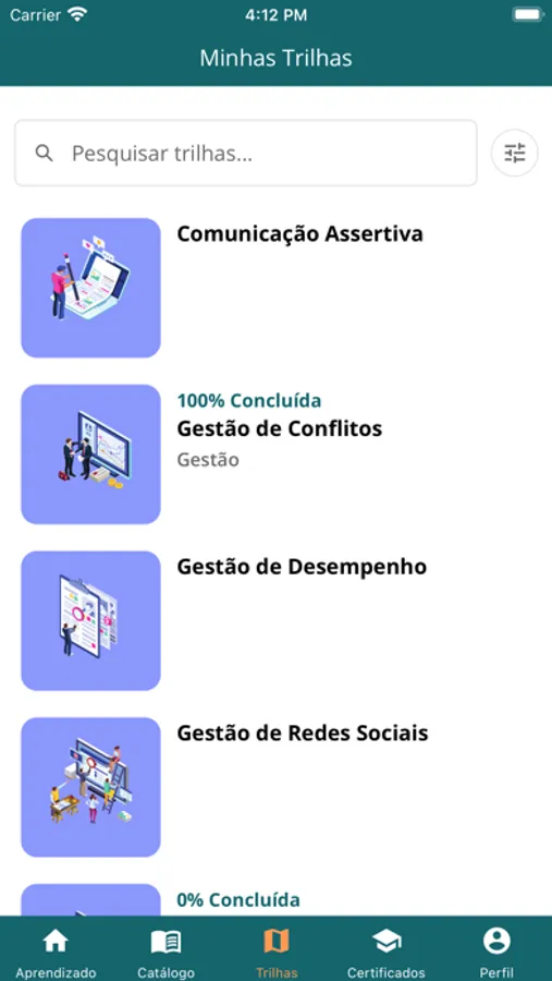 O APP híbrido Trilhas de Aprendizagem consiste em um Ambiente Virtual de Aprendizagem (AVA) corporativo ou educacional,