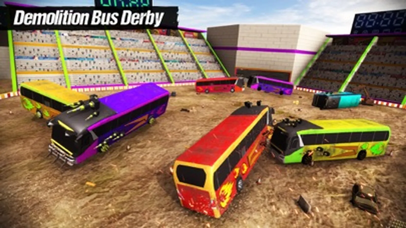 Join the real banger racing and play bus demolition derby game newest bus driving game to smash and destroy rival school buses and cars in an action-packed derby racing game.