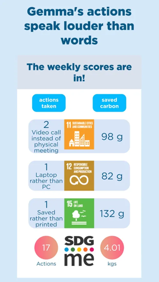 The SDGme app will allow you to: