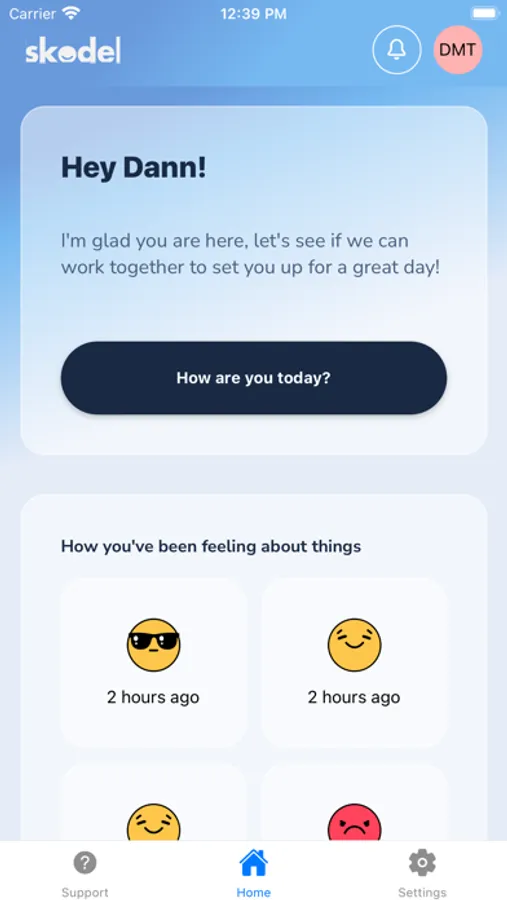 Skodel is an evidence based wellbeing and safety platform. It gives everyone secure ways to express how they've been going and provides suggested next steps from psychologists that can assist in building your own action plan.