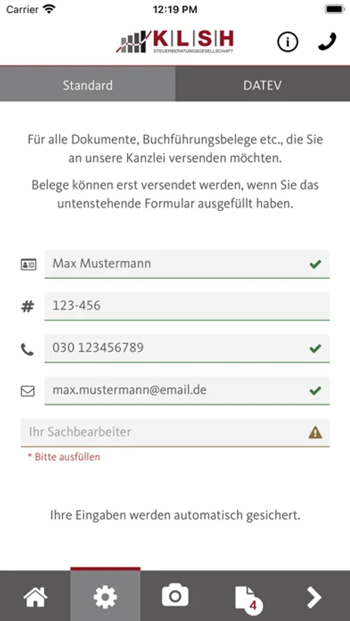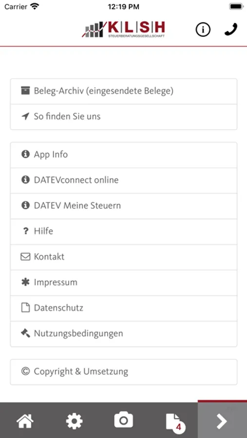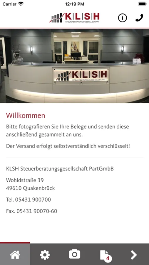 Mithilfe dieser App können Belege, Dokumente und andere Schriftstücke schnell, sicher und komfortabel an die KLSH Steuerberatungsgesellschaft PartGmbB gesendet werden.