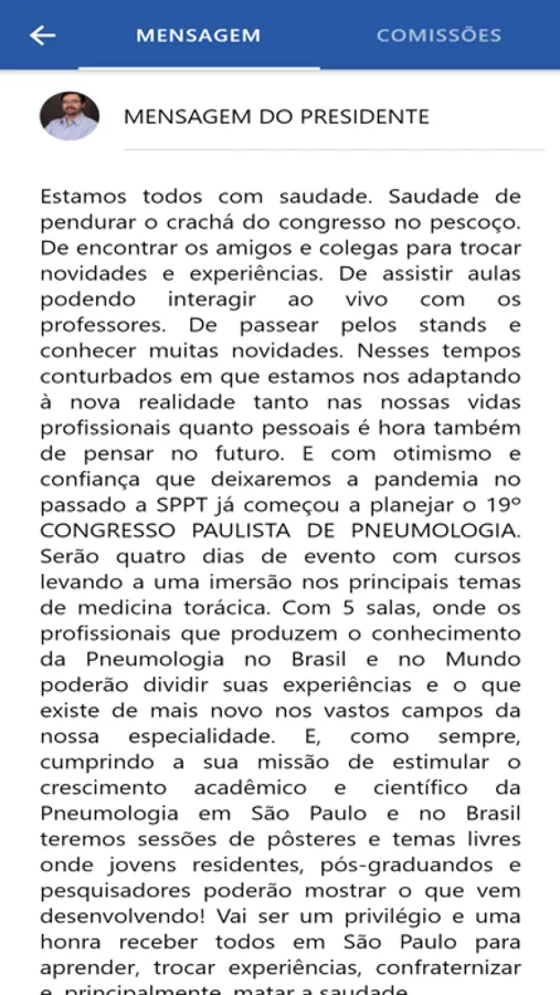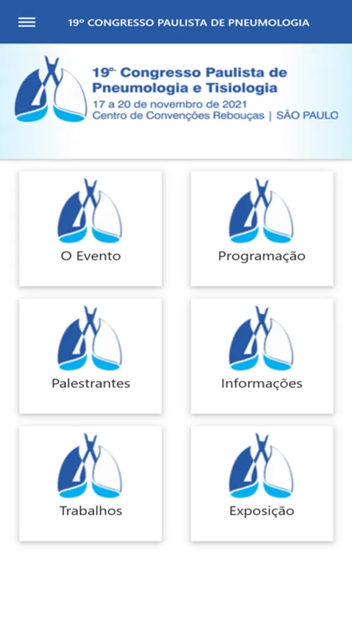 Aplicativo para o evento 19º CONGRESSO PAULISTA DE PNEUMOLOGIA, tenha todas as informações do evento em suas mãos, Programação, Informações e Trabalhos.