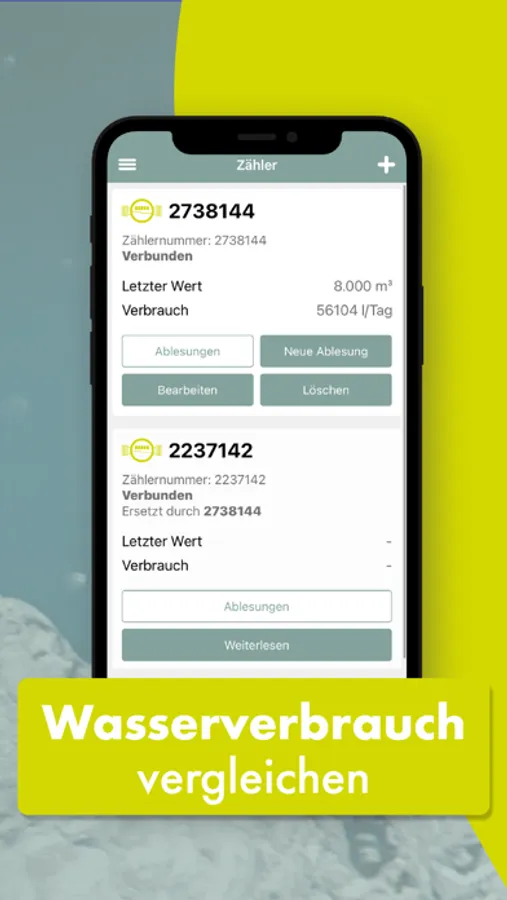 - Du kannst deinen Wasserzähler per QR-Code oder manuell anlegen und ihn auch ändern oder löschen – das alles auch für mehrere Haushalte.