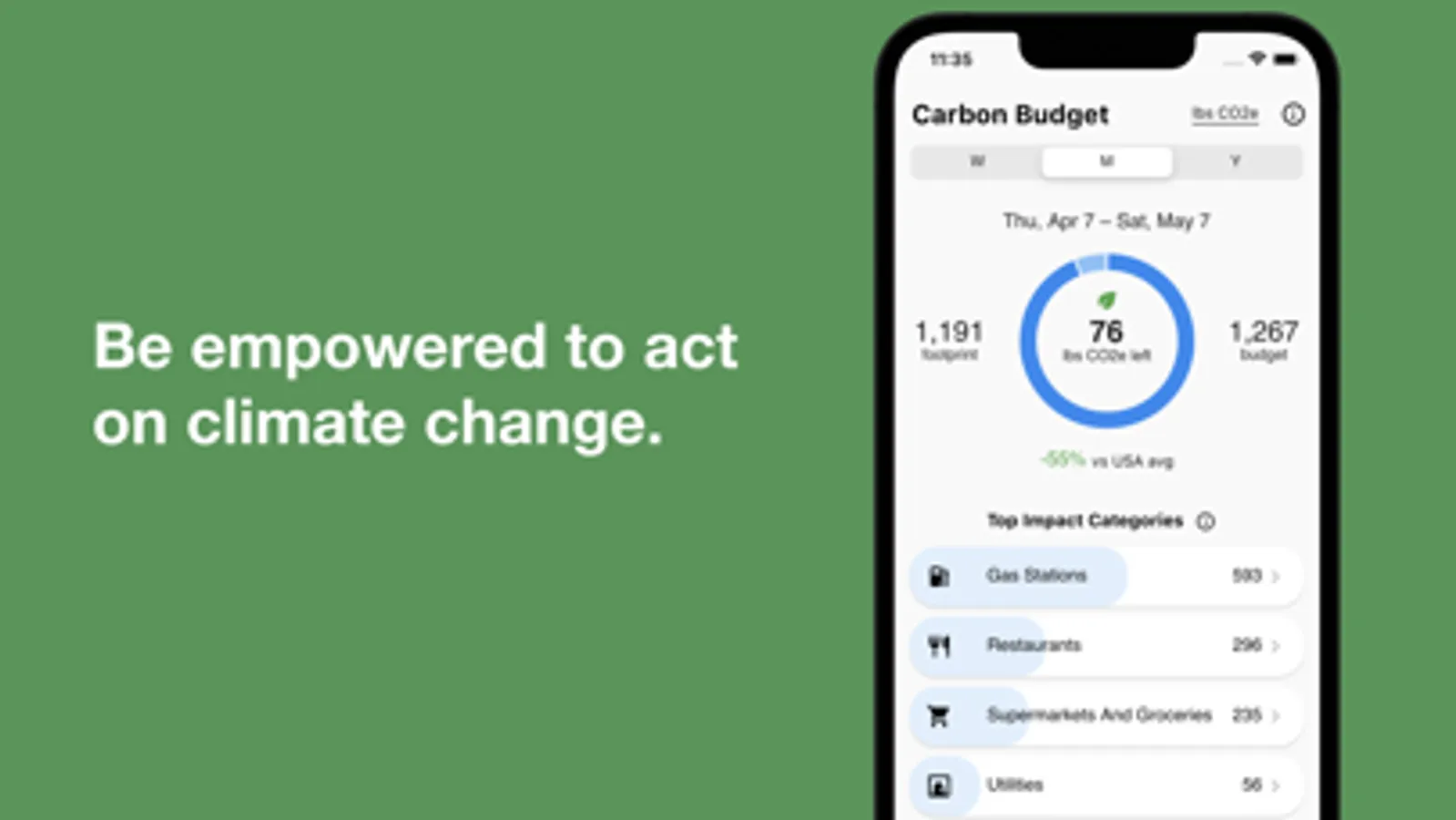- Set your carbon budget and reduce your emissions over time by completing climate actions