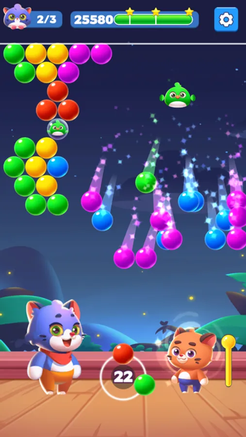 This is the most classic Match three and amazing shooting bubble pop game. Match at least three same color bubbles to break them & clear levels and try to get three stars in each level.