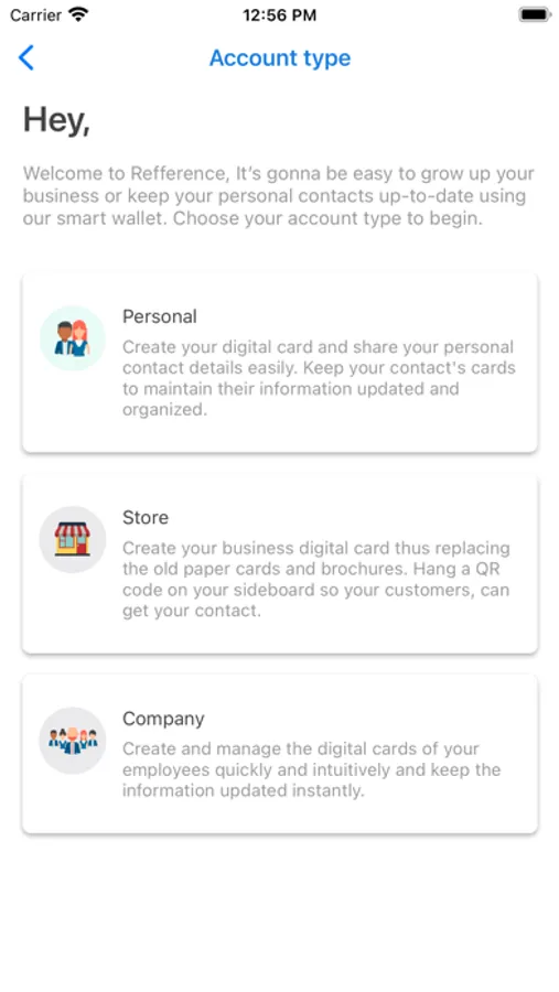 You have 3 modes of use, Personal, Store, or Company (in which you can register employees and easily manage their digital cards).