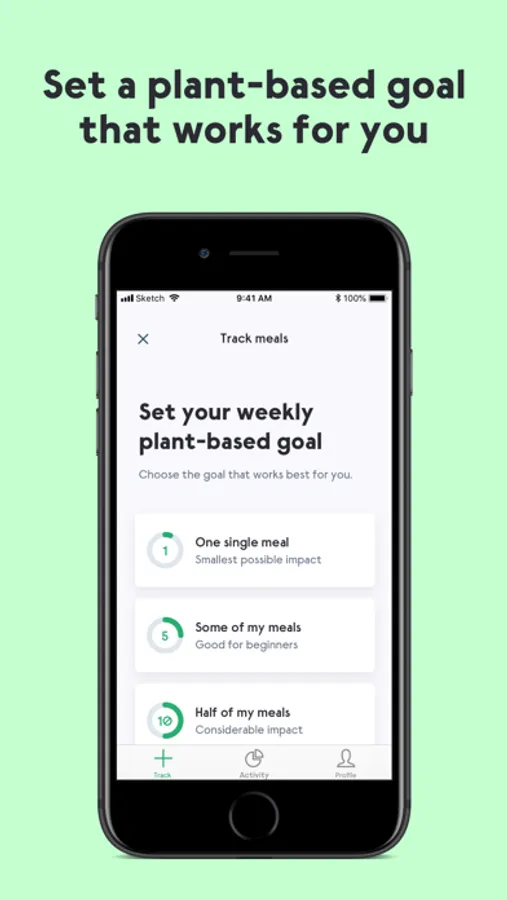 Greenhero makes you in control of your plant-based weekly goal letting you choose from goals ranging from 1, 5, 10, 15 and 21 plant-based meals a week. You just pick the one that works for you. You can also change your goal whenever you want if it feels too difficult to accomplish, or if you get too busy.