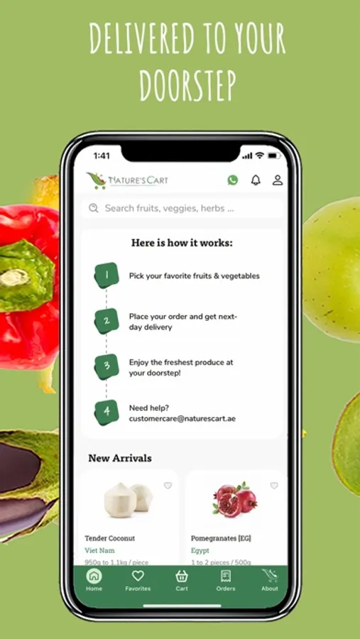 At Nature's Cart, we strive to deliver the freshest and healthiest varieties of fruits, vegetables and herbs to inspire a better (and healthier) tomorrow. We are a convenient delivery-only store offering same day or next day delivery in Dubai. Download our easy-to-use app and order your favourite fruits, veggies, herbs, fruit baskets, and organic fruits and vegetables. You can even place bulk orders, and we'll deliver them to your door!