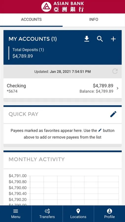 Start banking wherever you are with the Asian Bank Mobile App! Available to all Asian Bank Mobile Banking end users. The Asian Bank Mobile App allows you to check balances, make transfers, find locations and deposit checks. Need to find a branch or ATM closest to you? With Find Near Me, the Asian Bank Mobile App will discover your location and provide you with addresses and phone numbers on the fly.