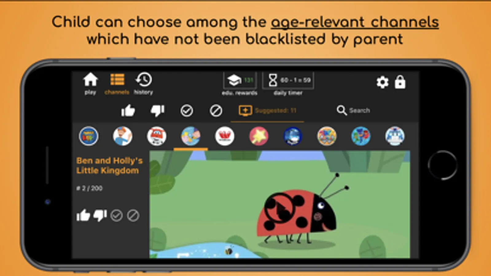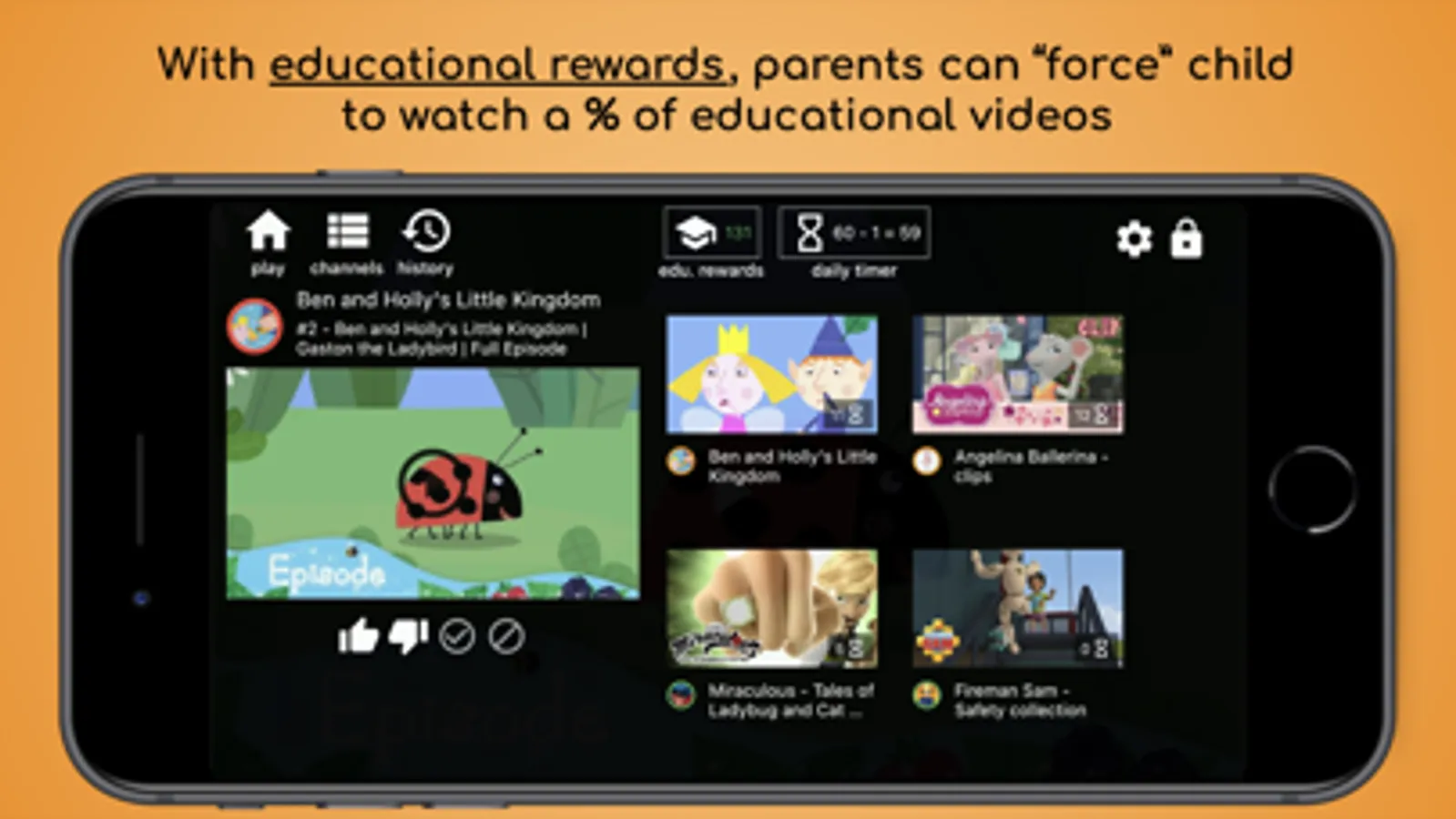 Child learns to manage his rewards, choosing educational channels frequently enough to avoid a situation where he/she gets restricted to educational videos...