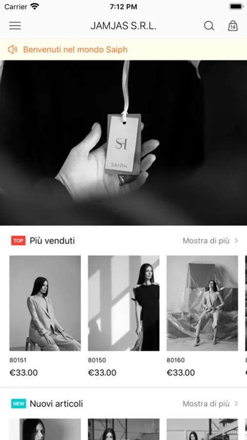 SAIPH è un app professionale per il mondo della moda, permette la visualizzazione del catalogo con pochi semplici passaggi. I nuovi utenti possono fare la richiesta di registrazione gratuita direttamente dall'applicazione, una volta che la richiesta viene accettata, il cliente potra' visualizzare tramite l'app tutte le informazioni sui prodotti ed effettuare gli ordini.