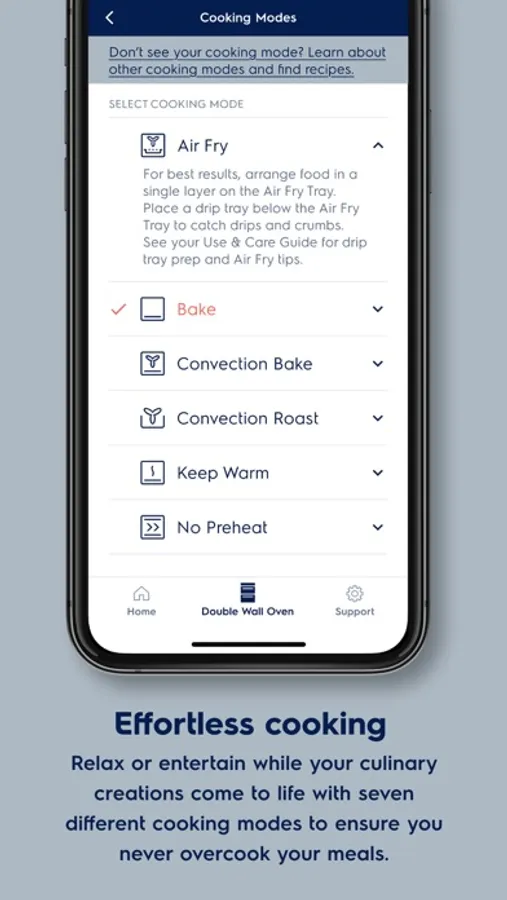 Monitor and control your connected Electrolux Wall Oven anywhere, anytime using the new Electrolux app. Preheat your oven, monitor cook time and control cooking modes such as Air Fry, right from your phone.