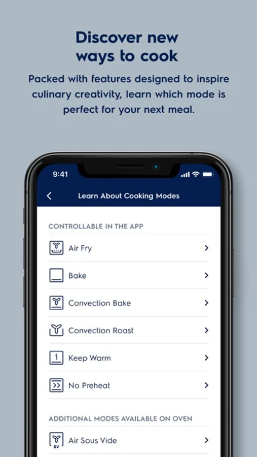 • Smart Phone Notifications: Receive real-time updates and cooking notifications when Preheat and Cook Times are complete.