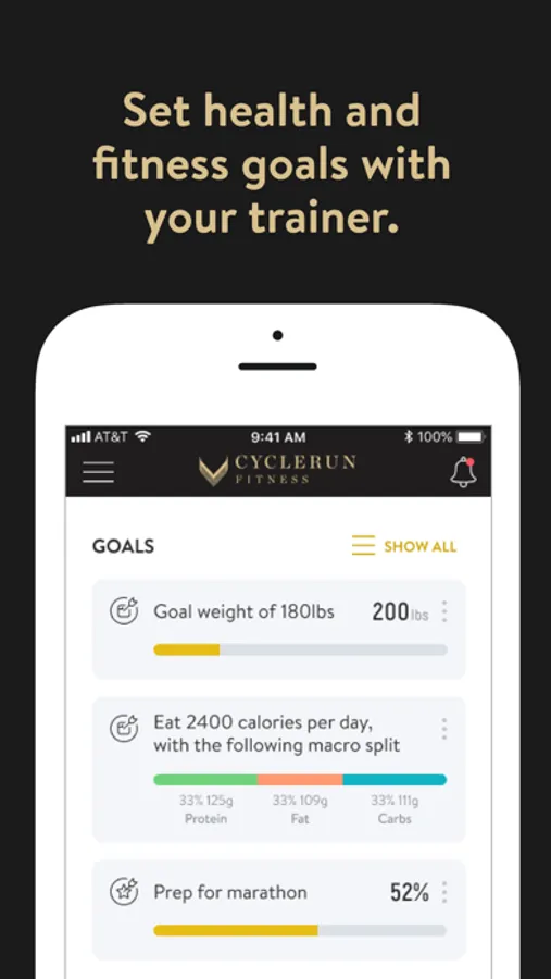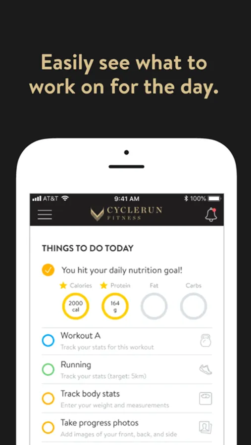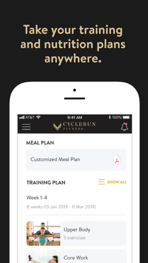 With the CYCLERUN FIT App, you can start tracking your workouts and meals, measuring results, and achieving your fitness goals, all with the help of your personal coach.