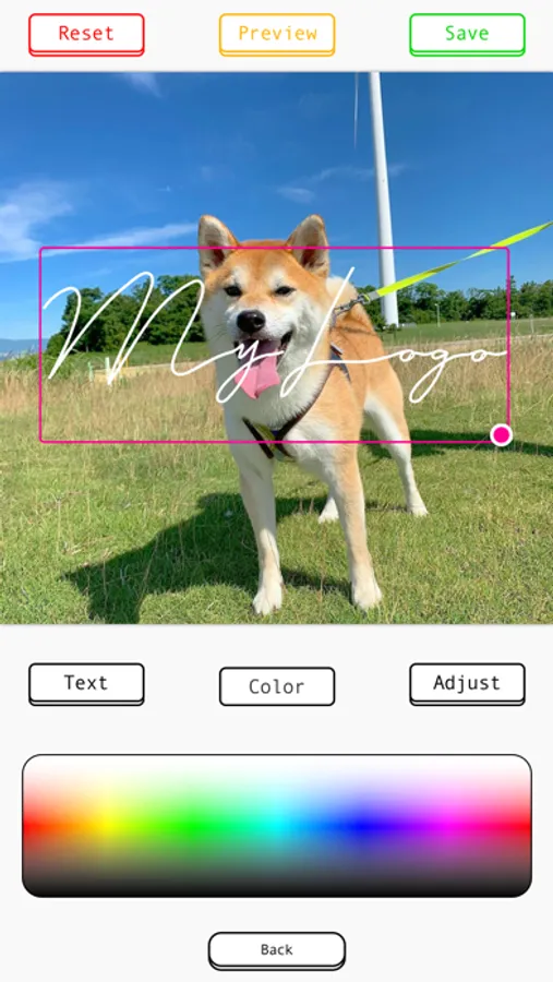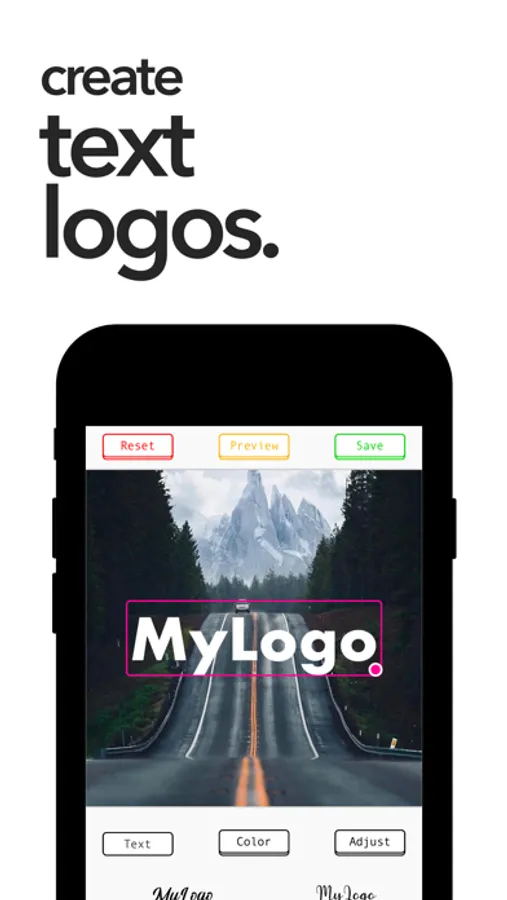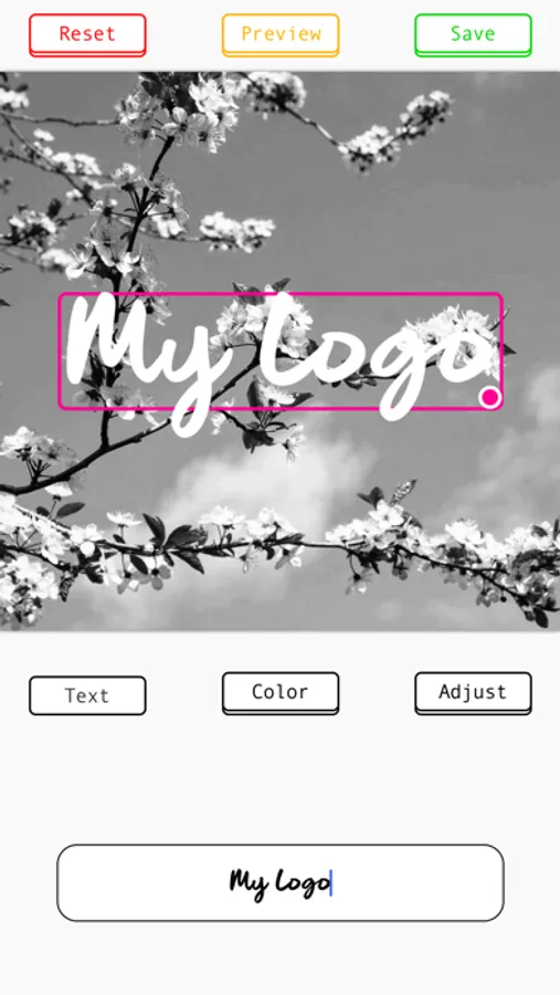 Choose photos from your photo library to insert your very own signature or custom-made logo. Choose from popular size formats: square, portrait, landscape or stories. Personalize your logo with font choices, color and opacity options.