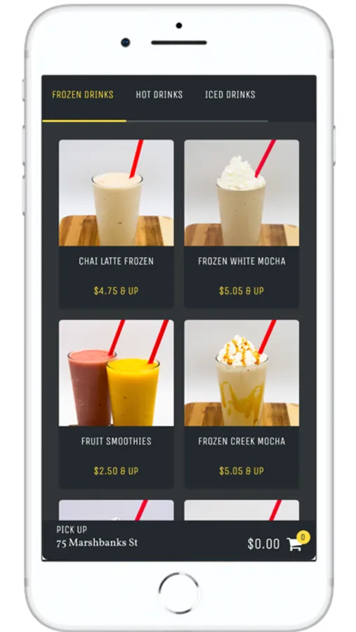 Order all of your favorite Hot, Iced, and Frozen beverages alongside your favorite food items! You can place an order for a quick pickup or set up a pickup time for later.