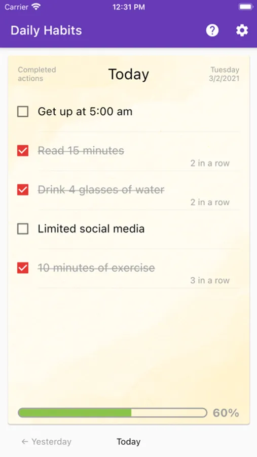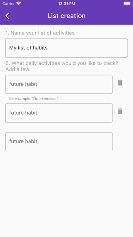 Make a list of the habits you strive for, or use predefined sets of habits.