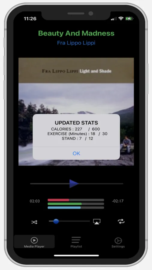 By integrating with the Health App, this app will show your Activity ( Energy, Exercise, Stand ) progress in Bar charts with white "tally" bars to show how many times you achieved your goals for the day. Click on the bar chart to see the updated numbers. Access music/playlists stored in your device and those in Apple Music. Try Apple Music for free.