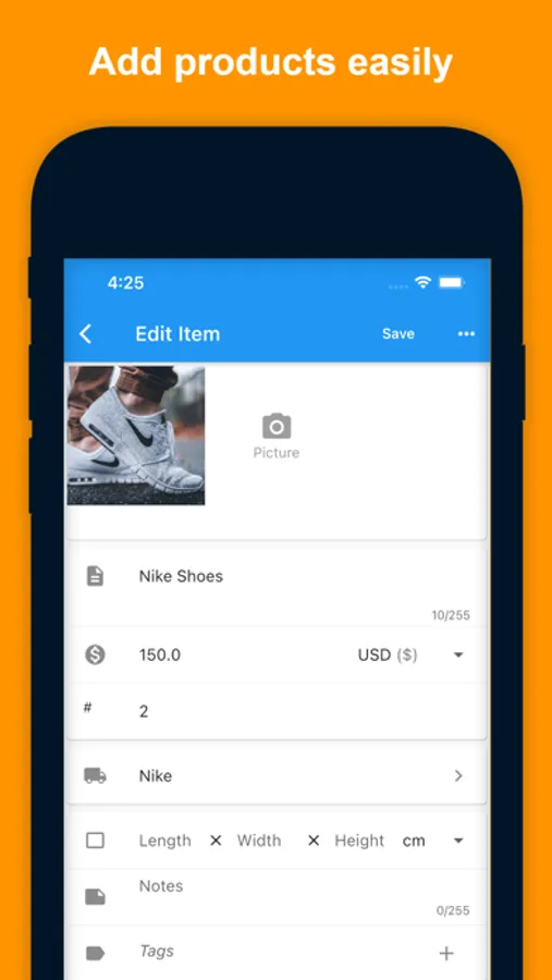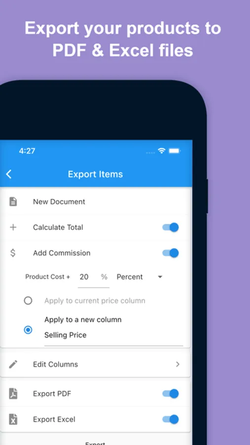 Easily capture products, fill in their details, and export them into an Excel or a PDF file within a few seconds.