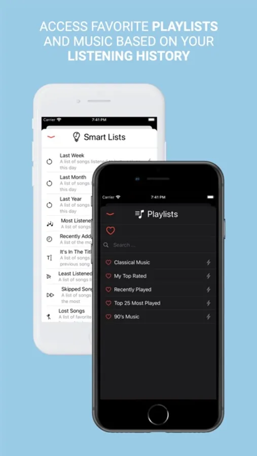 * Use Smart Lists to listen to music based on your listening history in different ways