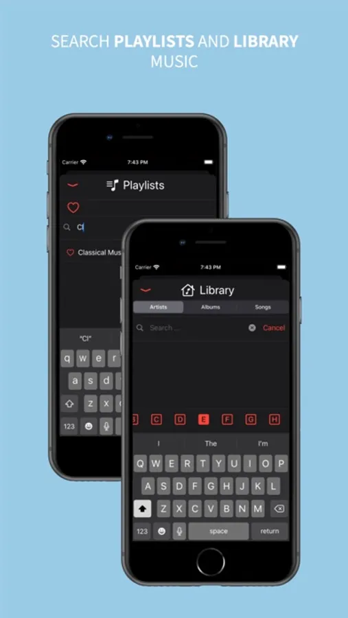 * Access your entire Apple Music library of Artists, Albums and Songs