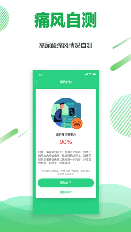 【声明】痛风快好应用内所提供内容不能替代专业的医疗建议、诊断及治疗。痛风快好始终建议用户在作出任何医疗决策之前,前往正规医疗机构就诊并接受专业医生帮助,并遵循医嘱。
