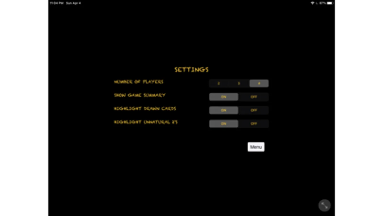Adjustable settings make it easier to teach new players to start, and can later be disabled to provide a more challenging game for more experienced players.