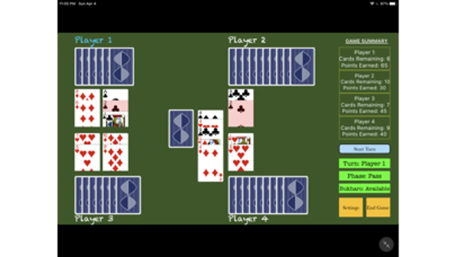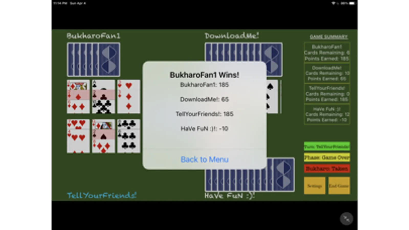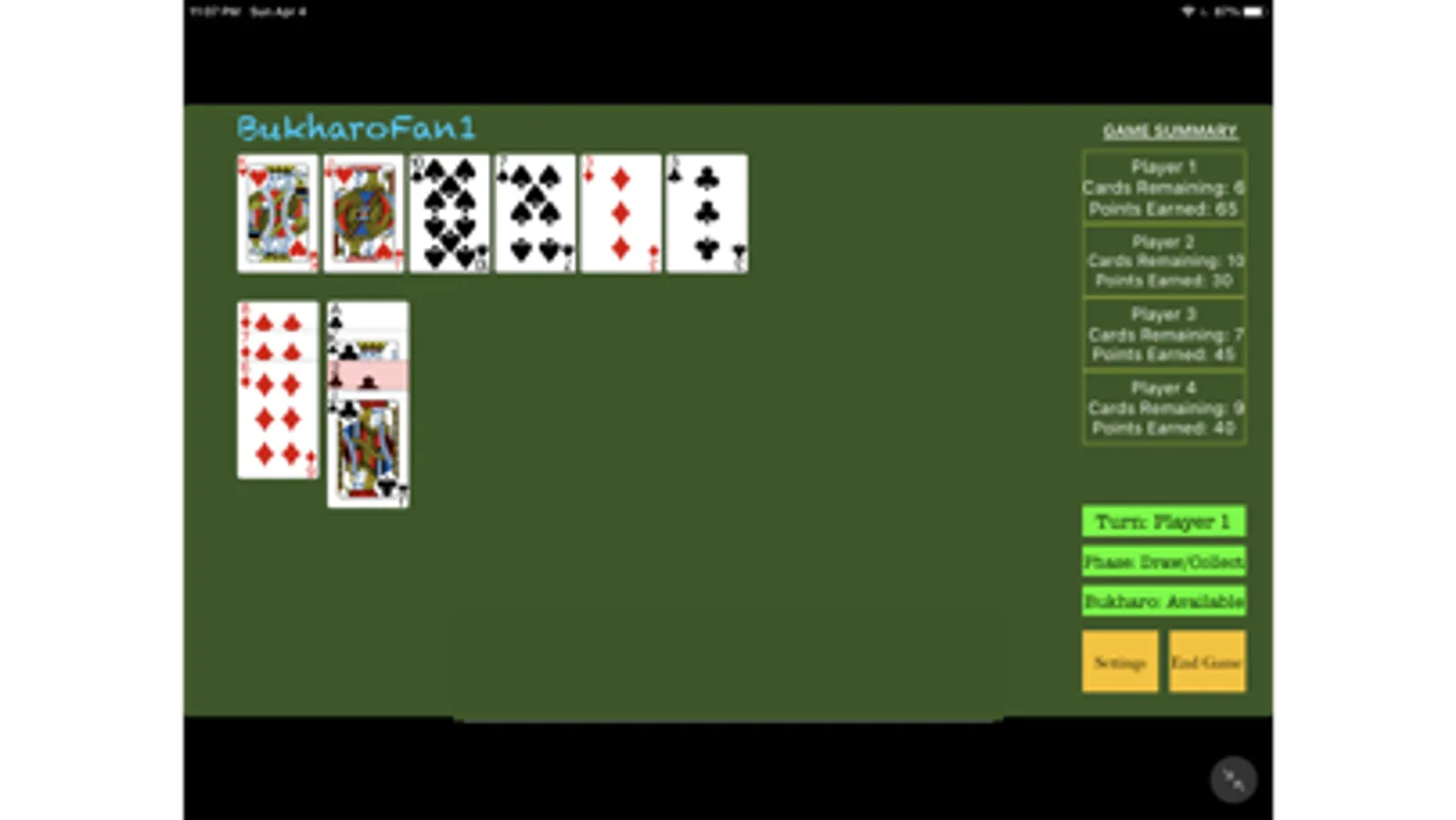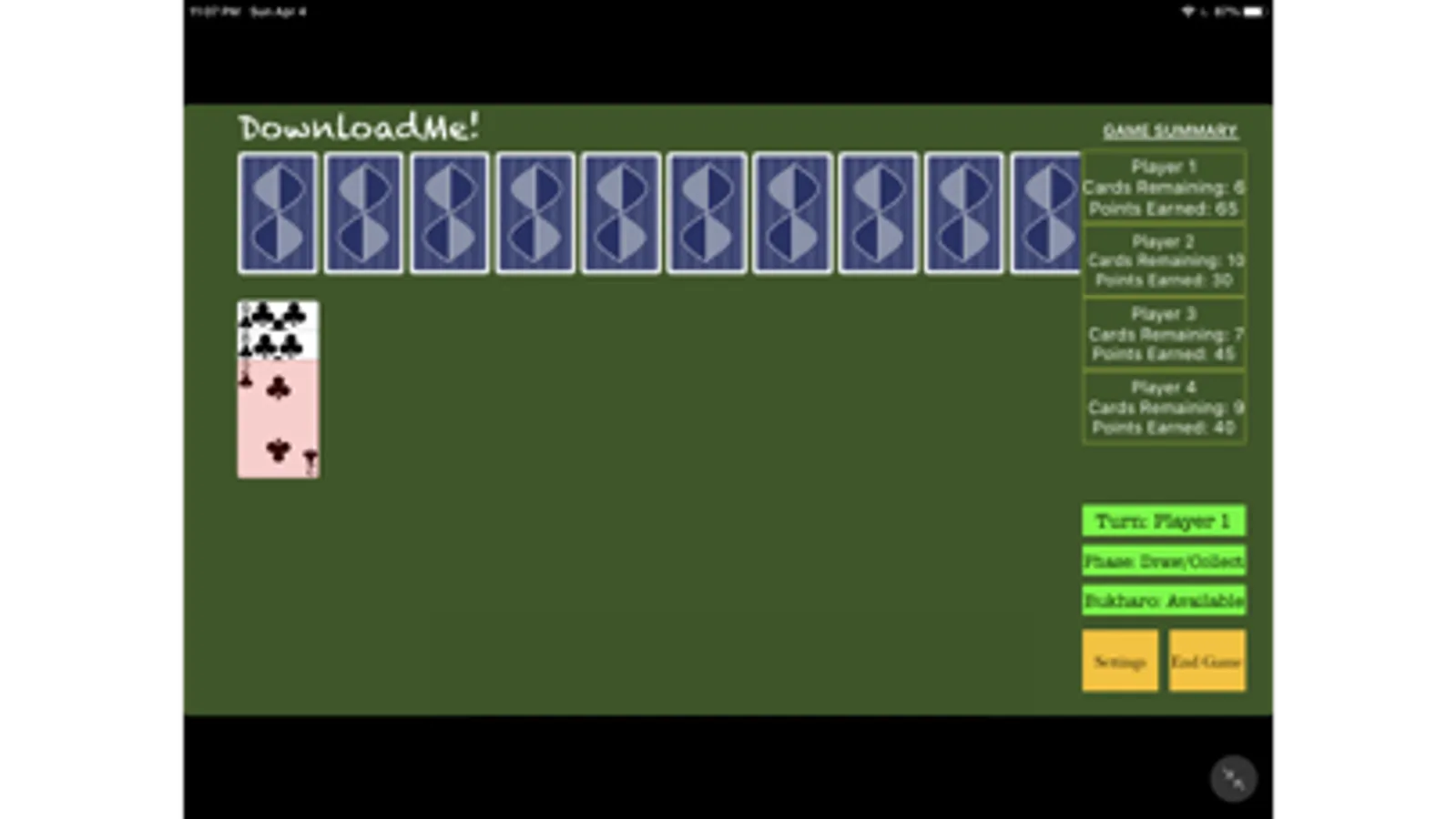 An iOS version of the popular Indian card game known as Bukharo. Designed for both new and experienced players, young and old players alike. Play with friends at home or online via our multi-player option!